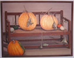 | 秘かに夫婦南瓜(とその子供とご近所南瓜)と呼んでいた絵。一枚で様々な南瓜がお楽しみ頂けます。 |
