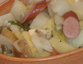 ![]() | 先日の「何となくドイツ風ごはん」に使った瓶詰ヴルストが一本だけ残っていたので、材料はほぼ同じで小さく切ってサラダ風(?)にしてみた。りんごがあったのでこれもスライスして一緒に蒸し煮、皿に盛ってからバターを少しだけ落とした。豚肉とりんご、バターはよく合います。昔はよく豚とりんごのソテーなんかを作ったものであったことよ。後で気付いたけどマスタードとりんご酢か何か混ぜてドレッシングにして、本当にサラダっぽくしてもよかったかも。 |