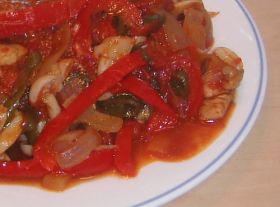 ![]() | 先週買ってまだ使わずに野菜室に入っていた赤パプリカを使いたかったので、鶏肉ときのこと緑ピーマンと一緒にトマトソースで煮る。ピペラード(9月4日の記事参照)を作ってパプリカをじっくり炒めると更においしいということが分かって、ますますパプリカ好きになったような。このくたくたになったのが甘くておいしいのよ。 |