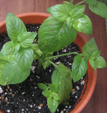 しばらく前に写真を上げたミント(8日の記事参照)、ふと気がついたら根が出てきていたので植えたら根付くかも...と鉢とハーブ用の土を買ってきて植えてみた。次の日見たら見事にひにょ〜っとなっていてやっぱりダメかのう、と思いつつ一応水だけはやっていたら、...じりじり、じりじり、て感じで復活してきた。ミント強いぞ。ミント頑張れ。元は食用ではなく観賞用の花束に入っていた枝なので、買う時に「これは食用には向きませんよね?」とお店の人に聞いてみたら「...そうですね〜...」と複雑な顔をされたが(食べようと思ってたわけじゃないですよ一応聞いてみただけよ)、有機肥料入りの土だし、これでうまいこと増えたら食用でもおっけーだろうか(やっぱり食べるのか)。 |
