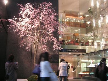 ちょろっと銀座へ行ってきた。ミキモトの前に毎年恒例の桜が植えられていたので記念写真。 |