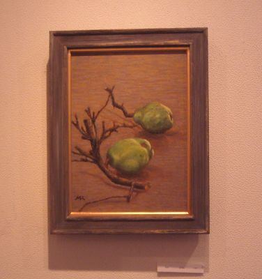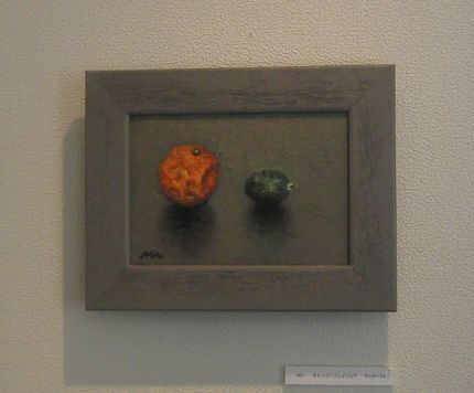 この絵は小さいです。萎んだオレンジとフェイジョア。多分東京だと湿気が多くてここまで綺麗に萎まないと思うので、山梨の高原のアトリエで描いたと推測。 |