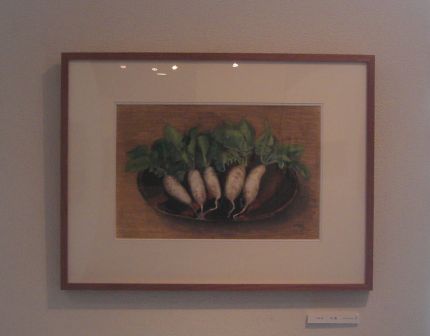 暗くてすみません。これは普通の大根だけど途中で間引いた「疎抜き(おろぬき)大根」らしい。この「おろぬき」という言葉は耳慣れなかったので初め方言かと思ったら違うようで、来訪された方も結構通じる方が多かった。調べたらちゃんと辞書にも載ってました。「うろぬき」とも言うらしい。 |