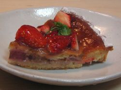 | とかなんとか色々お茶話は尽きないがやっぱりえらい長くなってしまったので今日はこの辺で。さーてお茶の時間にするかな、とFLO Prestigeのいちごとルバーブのタルト。 |