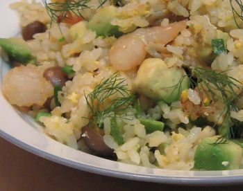 前回の記事のときとは打って変わって、買物に出てからなんかやたらとごはん作る気になってきた...のはよかったが、なぜか目に入ってきた複数のもの(というか見たもの全部?)に反応してしまったため、別々のところで見た「海老と茸の炒めもの(あるいは炒めご飯だったかも)」と「海老とアボカドのピリ辛炒め」その他色々を一緒にして「そうだアボカド入り炒めご飯を作ってみよう」という変な結論に至った。前にアボカドを炊きたてご飯にわさわさ混ぜて醤油かけて食べる、というのをやってみたら結構おいしかったもので(見た目は物凄く食欲をそそりません。アボカド大好きな人にはお勧め)。てなわけでにんにく、玉葱、海老、アボカド、しめじ、ピーマン、卵入りのヴォリュームたっぷりご飯。味付けは塩胡椒少々に酒、醤油、豆板醤、スウィートチリソース。アボカドは最後に入れて崩れない程度に全体に混ぜるくらい。具が多かったせいか柔らかい味になったので、もう少しぴりっとさせてもよかったかも。...しかしえりゃーお腹一杯になりました。 |