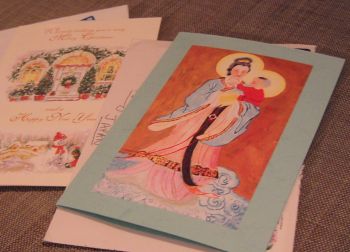 以前友人からのクリスマスカードの切手がインド人風聖母子でびっくり、という話(2005年12月13日の記事参照)を書いたが、今年の聖母子はアジア圏でも更に近づいてきました。同じ友人ではなく今度はアイルランドで仲良くなったB&Bのご夫妻から(左のカードは別の友人からの標準的なクリスマスカード)。なんて言うかもうどこから見てもチャイニーズ。まるっとチャイニーズ。多謝多謝。カードの裏を見るとどうやら本当にmade in Chinaのよう(カードの中には『○快涎×(○×はことえりじゃ対応できなさそうな字)』という漢字の下にHappy Christmasとある)だし、そりゃインド同様中国(や世界中に進出している中国系の人々)にもキリスト教徒はいるだろうけど、幾ら親しみやすくするため(?)と言ってもここまでしなくてもさ。だって聖書の話自体をそれぞれの国に置き換えるわけにもいかない(ガンジス川の水がばくっと割れてモーセ一行が対岸に渡るとか、十字架を背負ったイエスが万里の長城を上るとか←時代が変...)わけだし、外見だけ自分の民族と同じにしたらかえって混乱するんじゃないかと。日本にキリスト教徒が伝わってきたときだって着物来たマリアと大五郎みたいなイエスの絵を飾ったりしてないよね(多分...何かの歴史番組でそれっぽいものもあったようなことも聞いた気がするけど)? それとも日本人が元々八百万の神様カモーン!な寛大(?)な民族だから自分達と全く違う人種や衣装の神様でもそのまま受け入れたのであって、他の地域では「こんな自分達と違う外見の神様は信じられない」とか言われて現地化させたのか、あるいはかえって最近になって「白人至上主義はダメだよね、グローバルな宗教なんだからイエスも地域に順応させないとね」てな風潮になってきたのか、...はたまた「そもそも神様なんだから人間には本来見えなくて当たり前。見る人の人種文化によって親しみやすい姿に具現化されるってことにしましょう」というある種の開き直りなのか。中華的聖母子を見たくらいでこんなことぐだぐだ考えていること自体とっても時間の無駄なのか。...いや、友人にしてみれば単純に人種/文化的に近いしきっと喜ぶわね♪てことで送ってくれるんだと思うけど。いや確かに喜んでます。多分友人の期待とは微妙に違う意味で。しかしここまでチャイニーズでありながらもイエスとマリアの服の色が赤と青、という伝統的キリスト教画のお約束はしっかり守っている辺りが律儀と言うか何と言うか。...いつか本当に誰かからフジヤマゲイシャさんに抱かれた大五郎的なカードが来そうでちょっとどきどき。 |